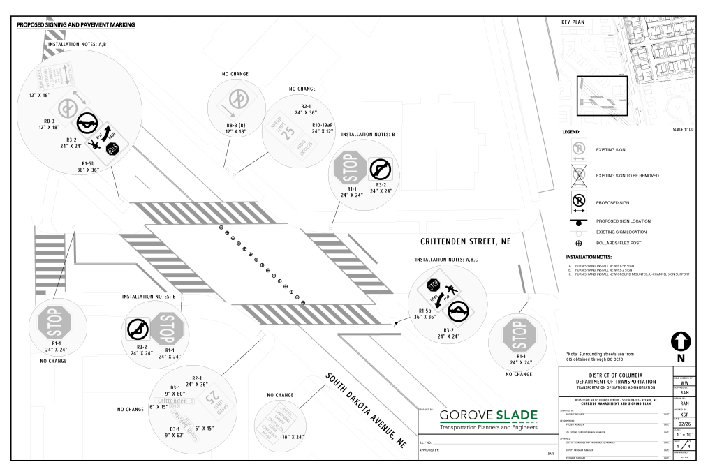 DDOT asked Urban Atlantic to pay for several traffic pattern changes. There will be a new crosswalk where the bus stop is located, new bus signage and other changes. One big change DDOT wants to do is close off the cut-through on Crittenden between Sargent and South Dakota. Commissioner Keith Sellars (5A01) asked if flex posts would be placed around the crosswalk to prevent people from parking too close to the crosswalk. Vicki Davis of Urban Atlantic responded no, right now the plan is just to have “No parking” signs even though we know that if there is a space big enough for a car in front of and behind the crosswalk, someone will park there.