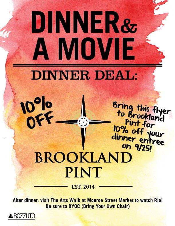 dinner.movie flyer Published September 24, 2015 at 612 × 792 in September 25: Dinner & Movie at Monroe Street Market Next → Brookland Pint discount flyer Trackbacks are closed, but you can post a comment.
