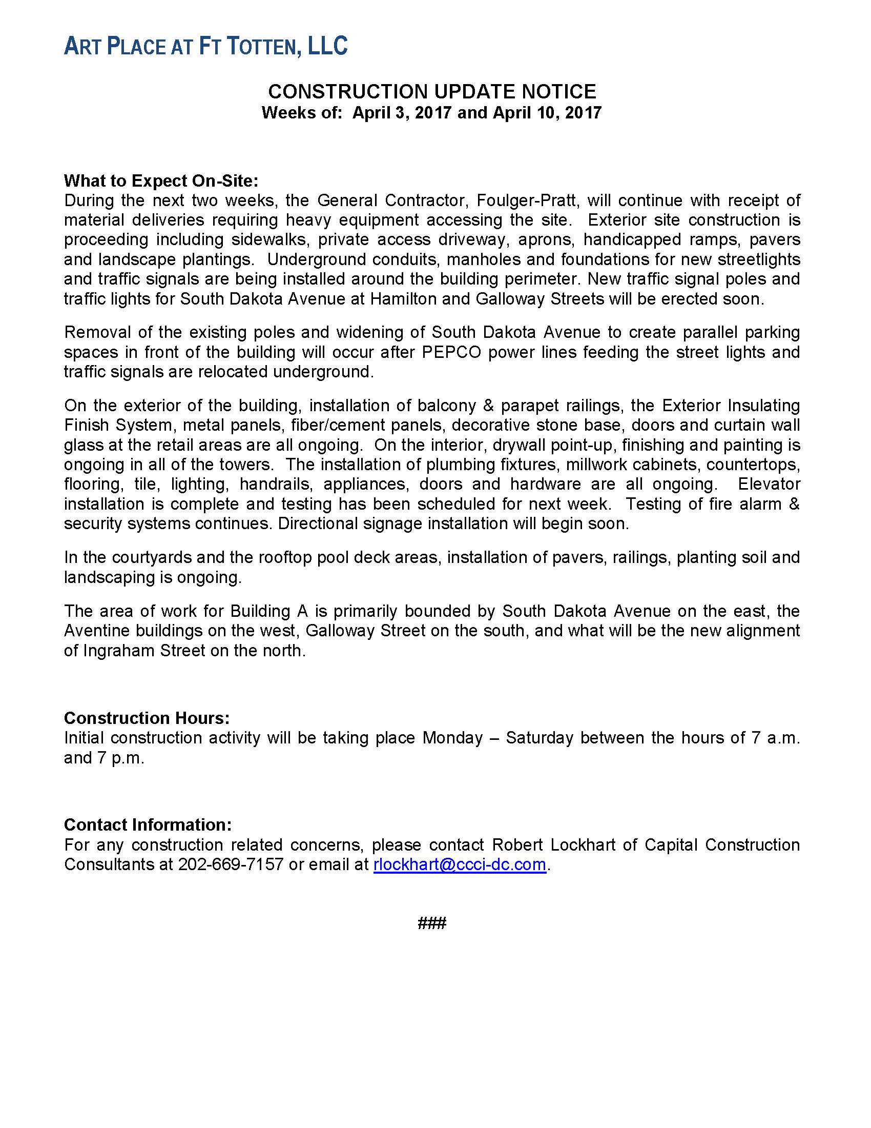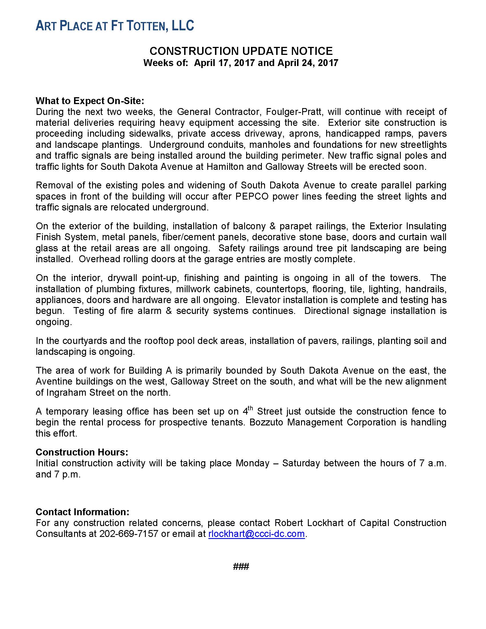 Art Place Construction Notice 4/17/2017 & 4/24/2017