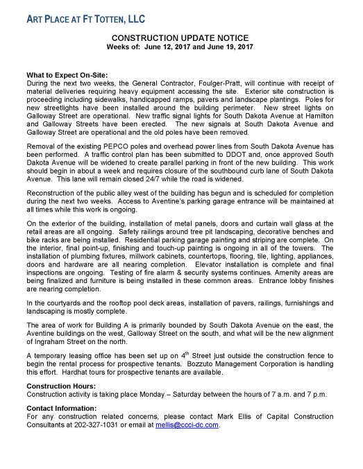 Art Place Construction Notice 6/12/2017 & 6/19/2017