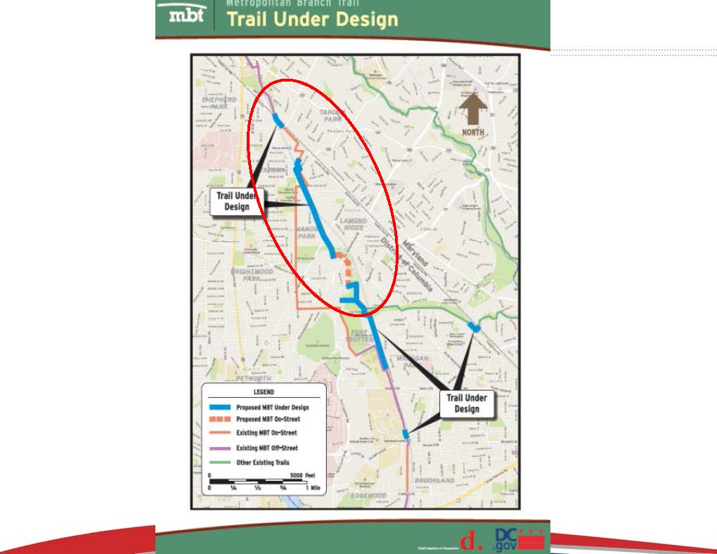On June 1, 2017, the public safety committee of ANC 4B held a meeting with DDOT to discuss the expansion of the Metropolitan Branch Trail from Fort Totten (Riggs Road NE) to Takoma.