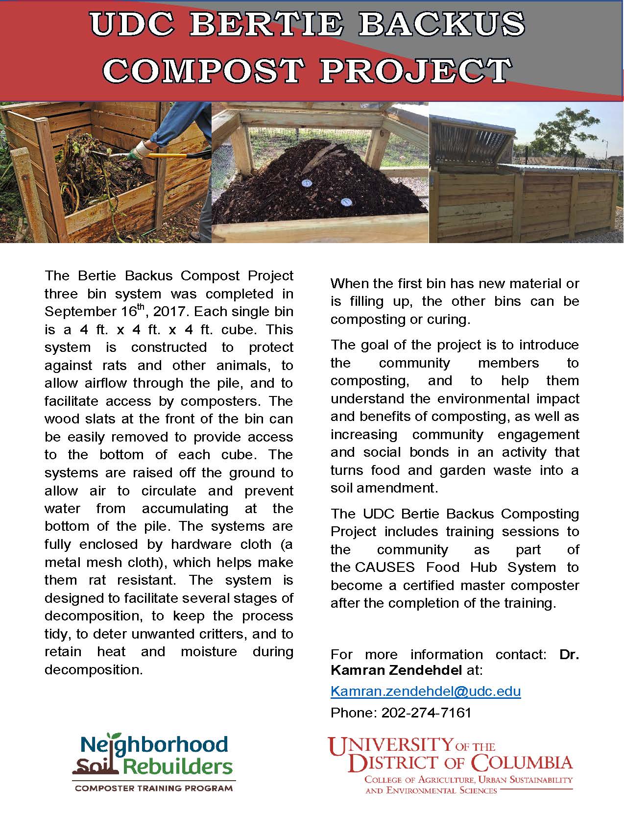 UDC’s Bertie Backus Food Hub, located at South Dakota Avenue and Galloway Street NE, is opening a community garden. They are looking for residents interested in serving on a management committee for the garden. If interested, contact Matthew Gardine at matthew.gardine@udc.edu.