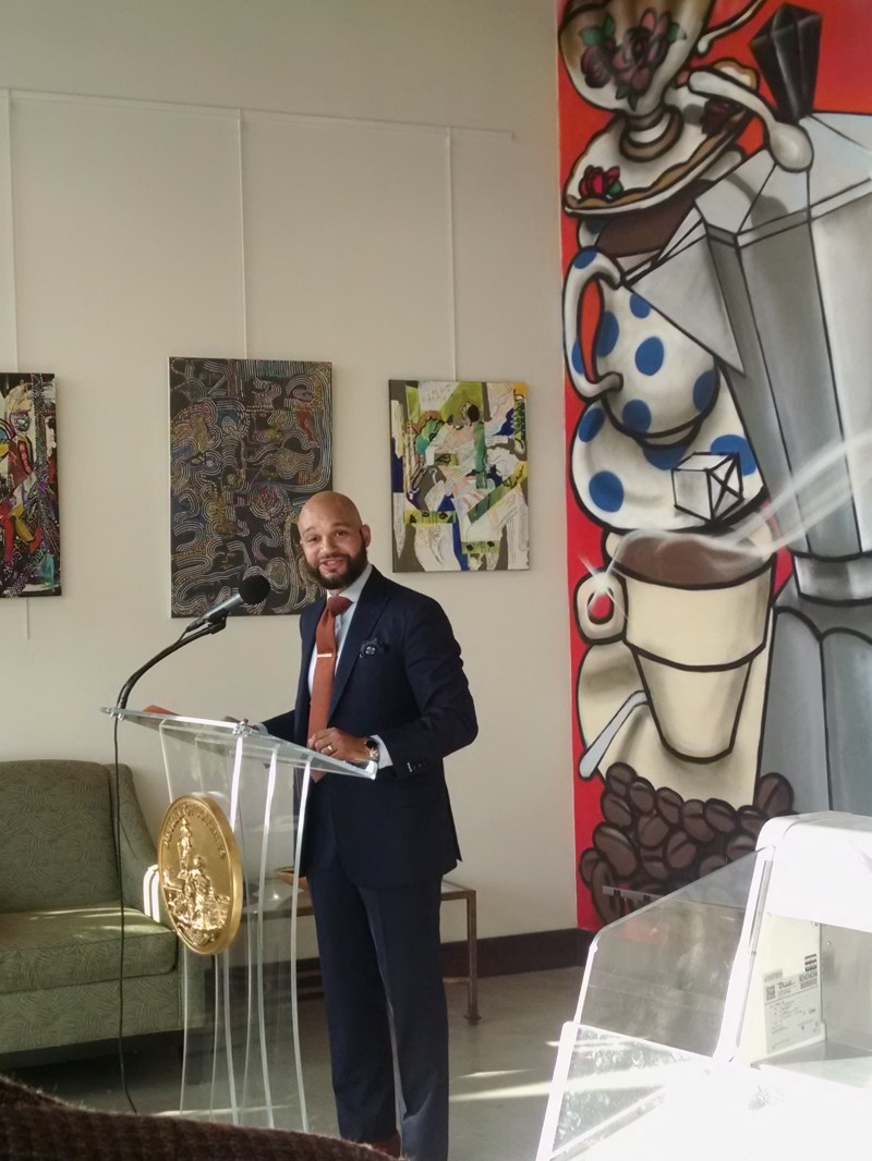 At Large Councilmember Robert White at ribbon cutting Published November 14, 2017 at 2424 × 3232 in Culture Coffee Too Ribbon-Cutting Next → At-Large Councilmember Robert White Trackbacks are closed, but you can post a comment.