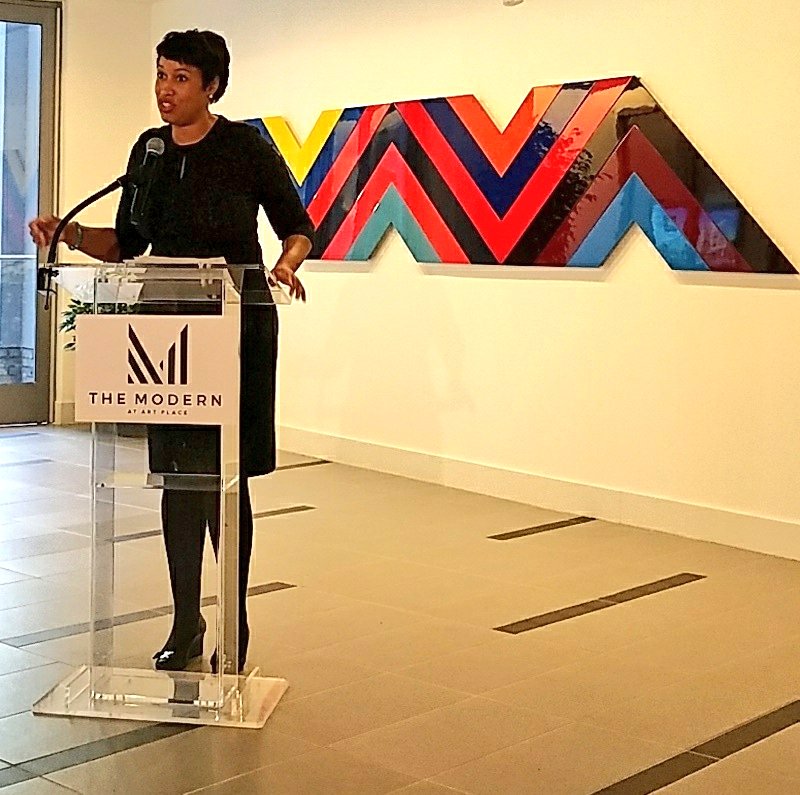Mayor Bowser at ribbon cutting Published November 29, 2017 at 800 × 795 in The Modern at Art Place Ribbon Cutting ← Previous Next → Mayor Muriel Bowser Trackbacks are closed, but you can post a comment.