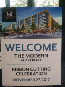 In September 2017, residents began moving into The Modern at Art Place, the first phase of Art Place at Fort Totten, located at 400 Galloway Street NE. On November 27, 2017, Mayor Muriel Bowser cut the ribbon to officially celebrate the opening of this development. Leasing for the 520 apartments is being done in phases. The retail portion covers about 100,000 square feet. Lots of rumors abound, but the retailers we know about for sure include X-Sport Fitness, Ramadans Pharmacy, Shining Stars Pediatric Dentist, and T-Mobile. Those will open some time after the new year.