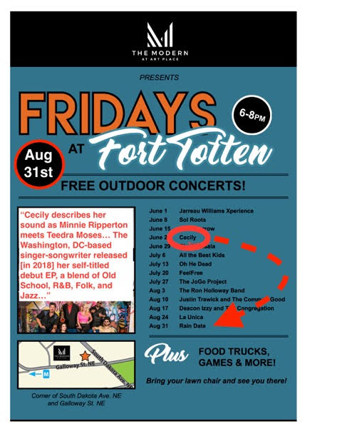 August 31: Fridays at Fort Totten Concert Series with Cecily