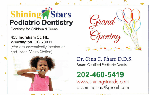 Shining Stars Pediatric Dentistry, located at 435 Ingraham Street NE, is open for business! Conveniently located near Fort Totten metro station, the pediatric dentistry is the first business to open at the Art Place at Fort Totten Development. The practice by Dr. Gina Pham, a 15-year board-certified pediatric dentist, is accepting appointments for comprehensive dental services for infants, children, and teens. As children return to school, now is the perfect time to book those back-to-school checkups. Book an appointment online or call (202) 600-4833.