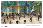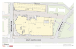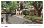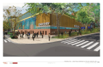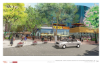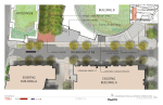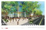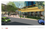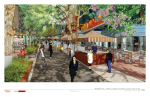 - Apartment building with approximately 210-250 rental units with ground floor retail on western side of closed 4th Street; current renderings show brick veneer and paneling of mix of neutral colors