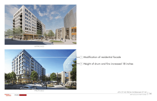 The developer of Art Place at Fort Totten has filed a Modification of Consequences with the Zoning Commission for Block B to get approval for a few architectural changes. (We covered that in this post).