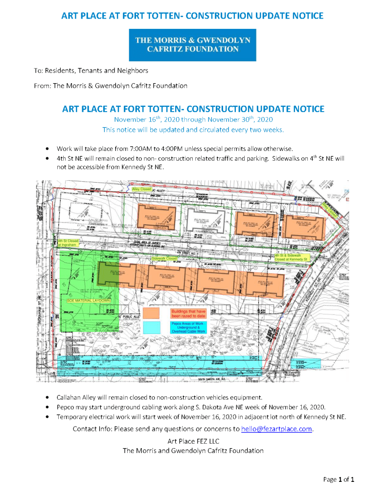 The quarterly National Park service meeting with Congresswoman Eleanor Holmes Norton’s office originally scheduled for December 2, 2020, is postponed until first quarter 2021. In the interim, inquiries about NPS issues may be sent to Norton.Casework@mail.house.gov.