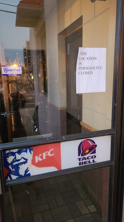 The end of an era. The KFC/Taco Bell located at 220 Riggs Road NE across from the Walmart has permanently closed. A new Chick-fil-A will replace the restaurant, a topic covered in several posts on the blog. The developer is still awaiting permits.
