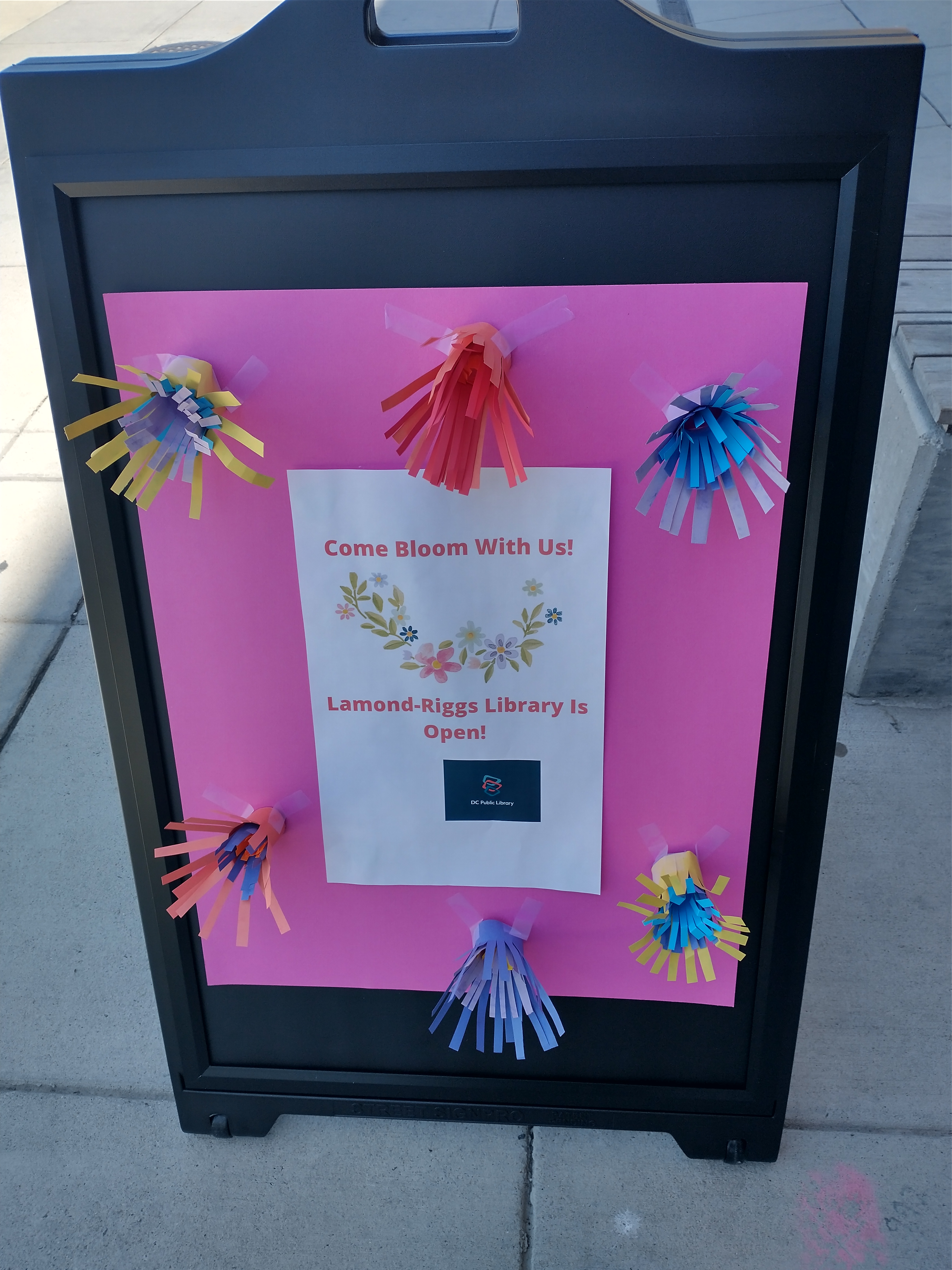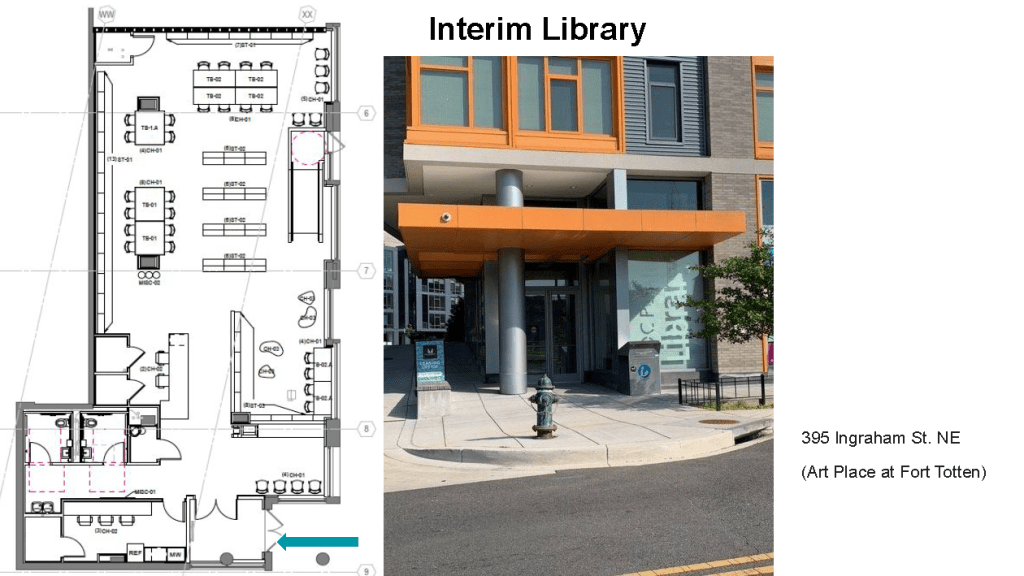 The Lamond-Riggs Interim Library, located at 395 Ingraham Street NE, will open on June 28, 2021. Patrons will be able to pick up holds, browse a small collection, and use public computers.