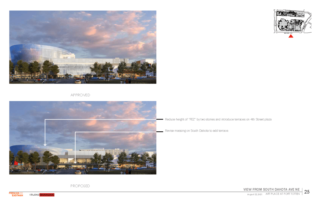 The developer believes that the changes are not so significant as to require a hearing and anticipates that the Zoning Commission will be able to consider the modification on the record at a public meeting on September 30, 2021.