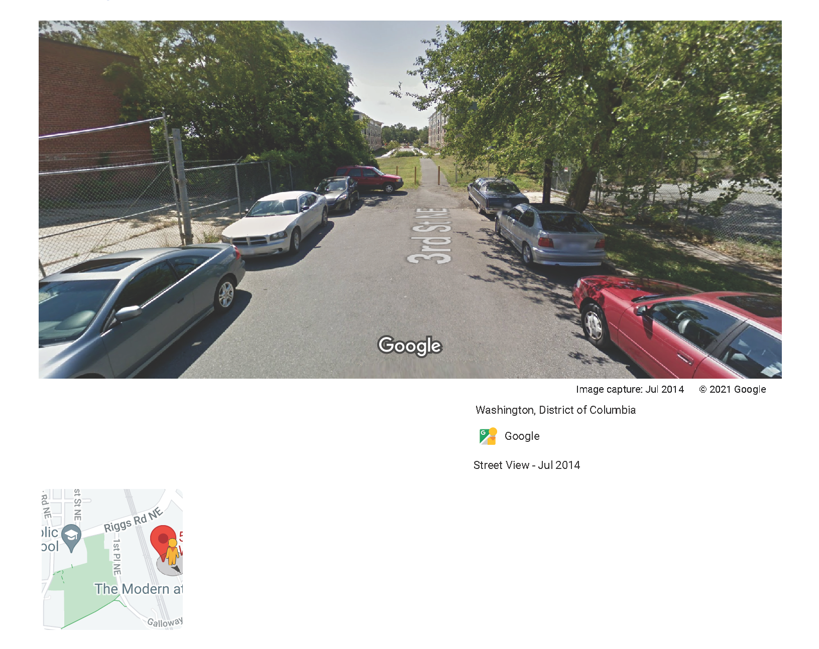 The biggest takeaway to me, and one not reflected in any of the developer’s submissions to the Zoning Commission or in the biweekly Phase 2 construction updates from the developer, was that the development team will be “extending 3rd Street between Ingraham and Kennedy Street NE” to provide access to vehicles. For those unfamiliar with this location, west of South Dakota Avenue, there is a bend in the road to go from Kennedy onto 3rd Street and then vehicles can go no further. There is a short, worn asphalt path that pedestrians use to get to and from the Fort Totten Metro station and other nearby locations. There used to be bollards there, but the bollards have been removed, and a makeshift ramp has been put in place. Rocketship, Social Justice School, and AppleTree opened up for in-person instruction this fall and I have seen many families walking along this path to get to the schools, which occupy the renovated warehouses at 5450 3rd Street NE. The road picks up again on the other side of that short path near the entrance to the parking lots for the Aventine apartment buildings.