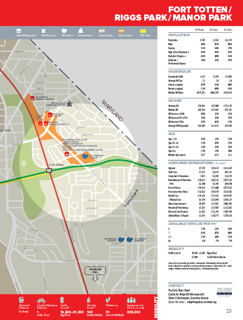 I always like to see if there is anything different from year to year. You can see the 2020 profile sheet here. I can’t say there’s much change in demographic data (expected). The neighborhood Main Street for Riggs Park (The Parks Main Street) gets prominent placement, having expanded in the last year or so to include the businesses on 2nd and 3rd streets NE. WDCEP also added Manor Park to the profile sheet this year because The Parks Main Street also covers one commercial block in the Manor Park neighborhood.