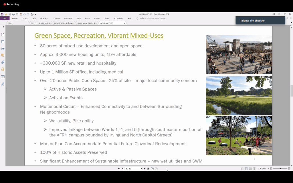 The development team for Art Place at Fort Totten presented before the full ANC on proposed modifications to Phase 2, otherwise known as Block B. The team gave the same presentation the day before at Commissioner Fletcher’s SMD meeting. I covered this topic separately in theseposts, so I will not recount the details here.