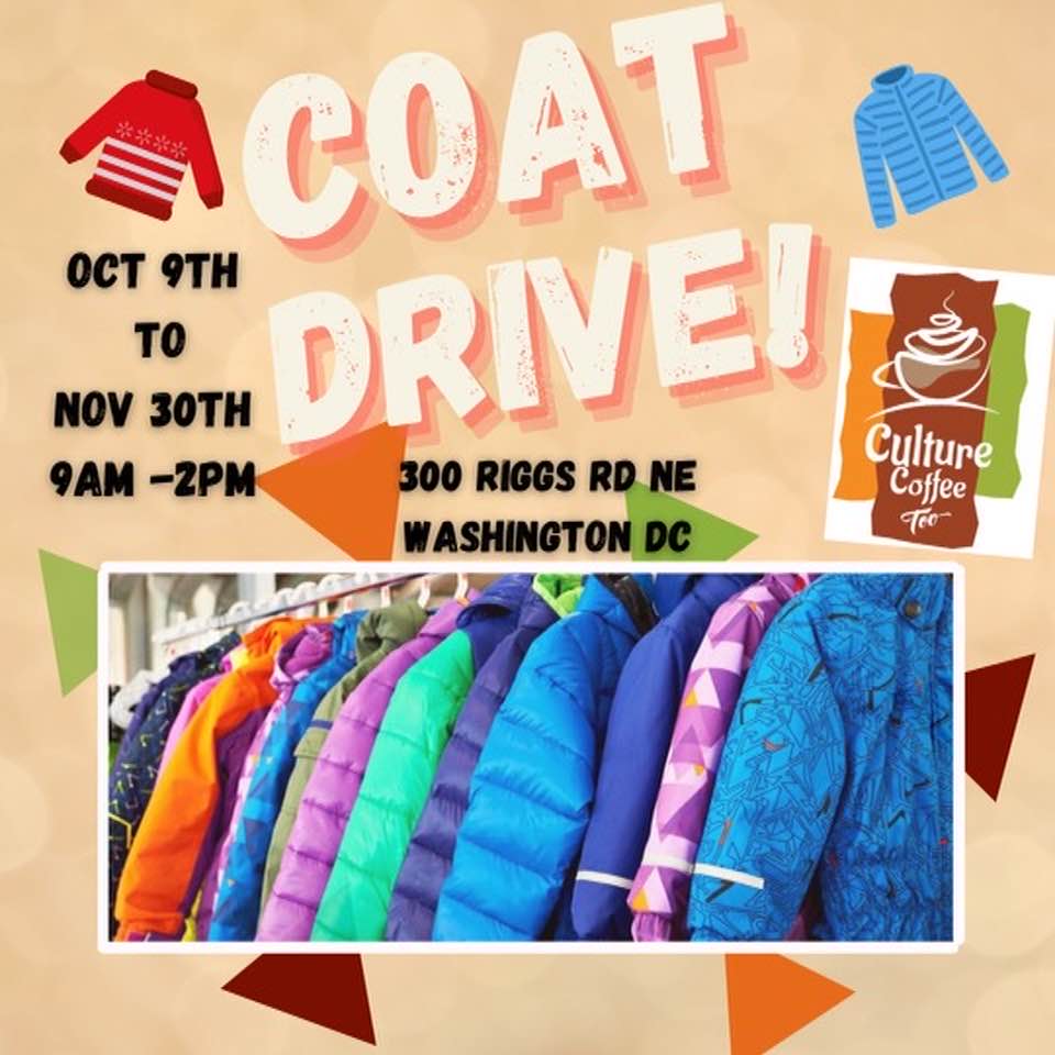 Next time you visit Culture Coffee Too for coffee or tea, drop off a new or gently used winter coat for CCT’s winter coat drive. October 9 – November 30, 2021, at 300 Riggs Road NE.
