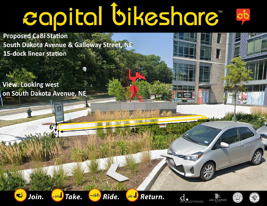 From DDOT presentation: Views of proposed location for new bikeshare location, South Dakota Avenue & Galloway Street NE