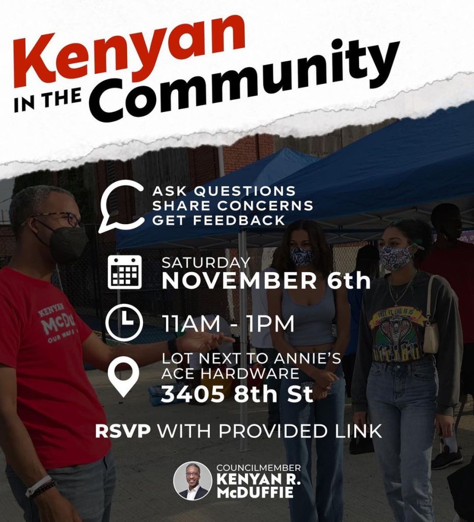 Neighbors, Councilmember McDuffie will be holding community office hours on Saturday, November 6th. We are welcoming neighbors to join Councilmember McDuffie at the lot next to Annie’s Ace hardware store located at 3405 8th St NE. To schedule your meeting with Councilmember McDuffie follow the link here – https://calendly.com/ward5/fall-office-hours.