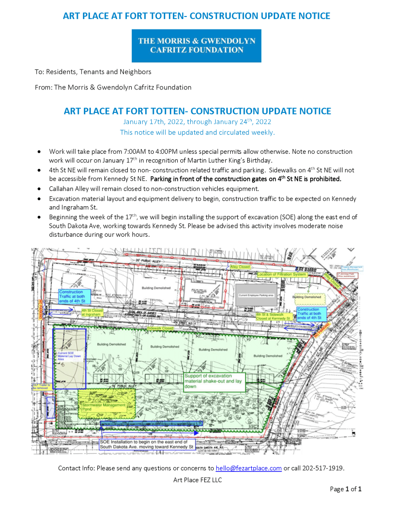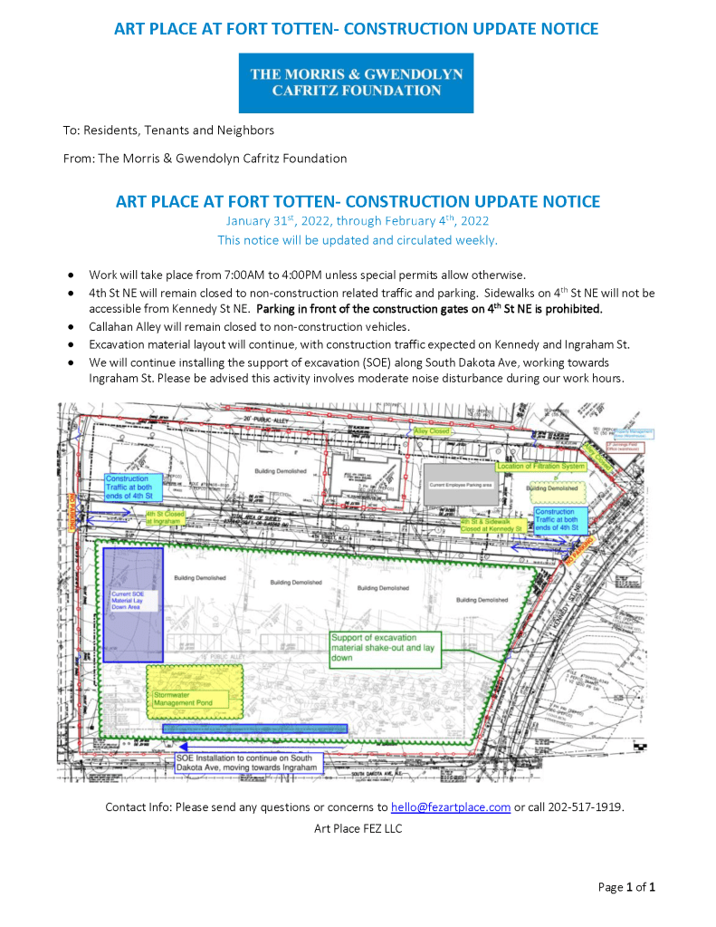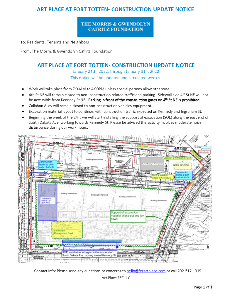 Any time-sensitive Construction Safety issues can be reported to Consigli Construction Superintendent- Michael Davis at 202.570.3375.