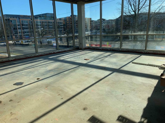 Photo from South Dakota Ave. showing completed (glass) curtainwall which will receive the perforated metal Panels