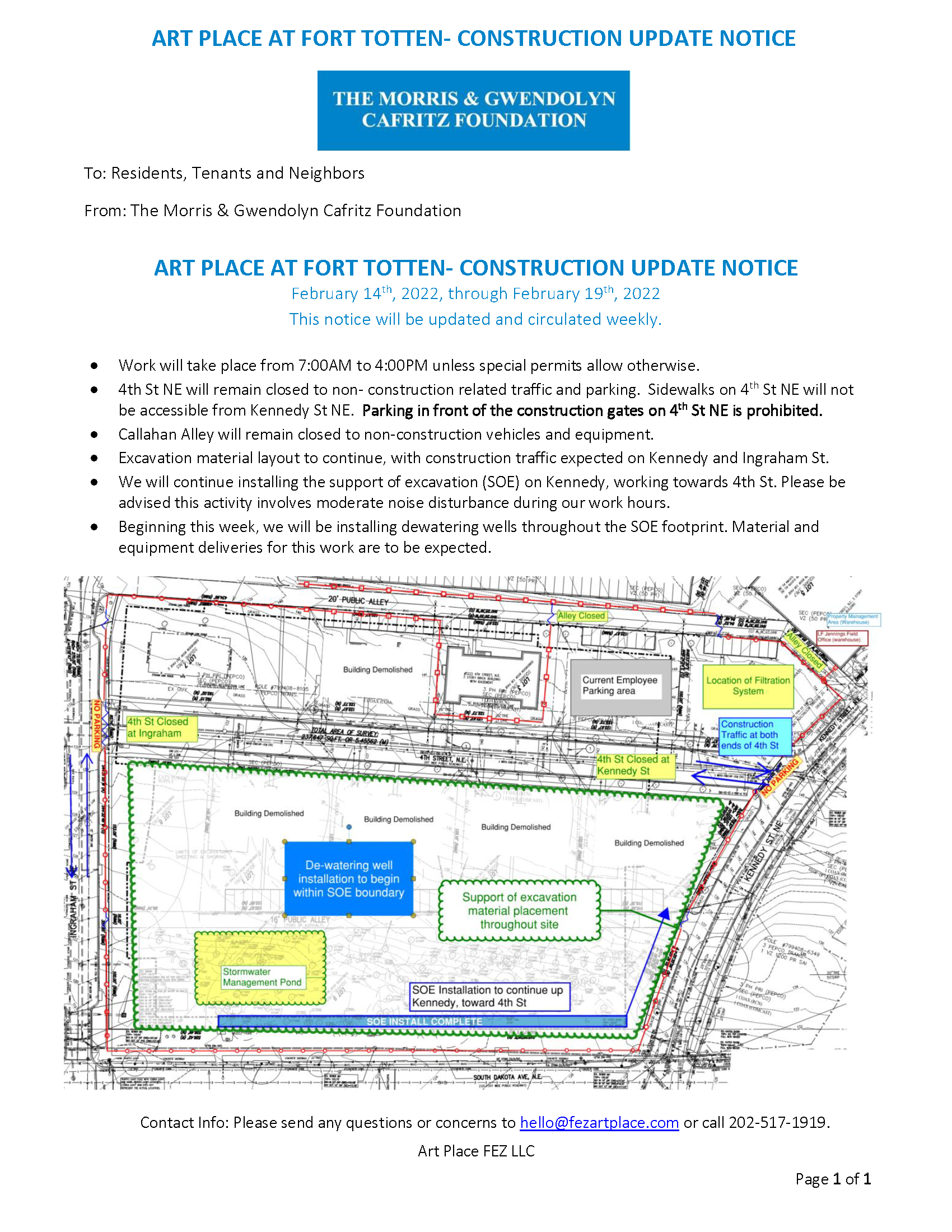 Any time-sensitive Construction Safety issues can be reported to Consigli Construction Superintendent- Michael Davis at 202.570.3375.