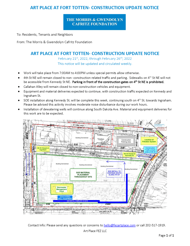 THE MORRIS AND GWENDOLYN CAFRITZ FOUNDATION ANNOUNCE GROUNDBREAKING OF PHASE 2 OF ART PLACE AT FORT TOTTEN