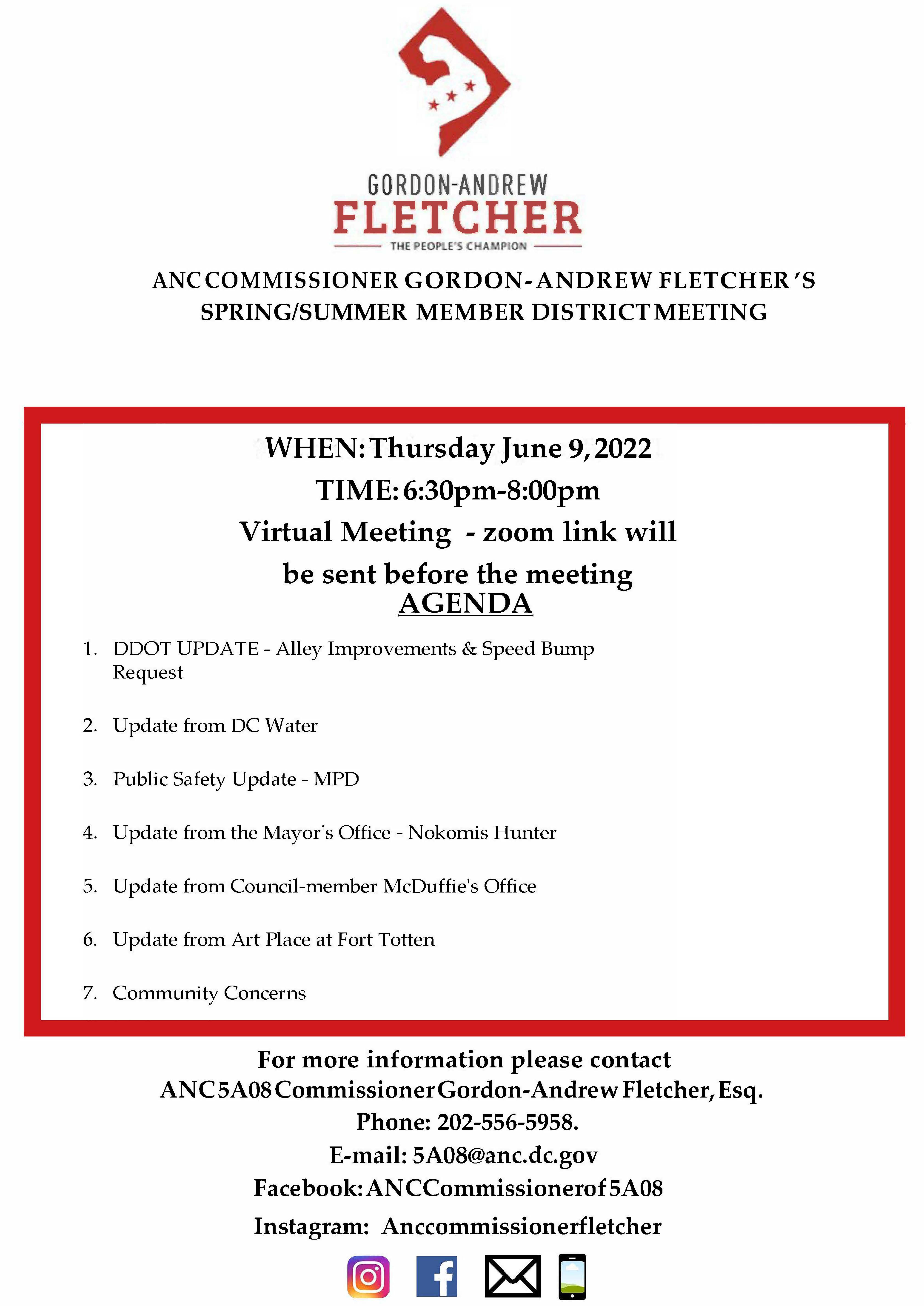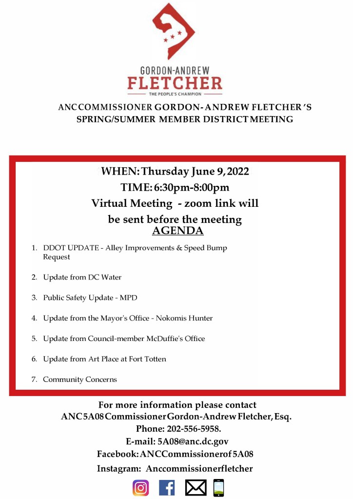 North Michigan Park Civic Association Meeting Agenda June 1, 2022 7:00 pm