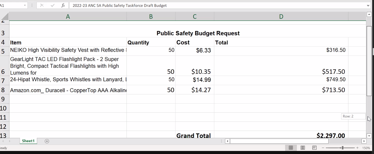 ANC 5A Public Safety Task Force Draft Budget