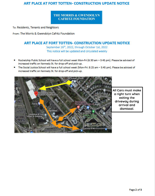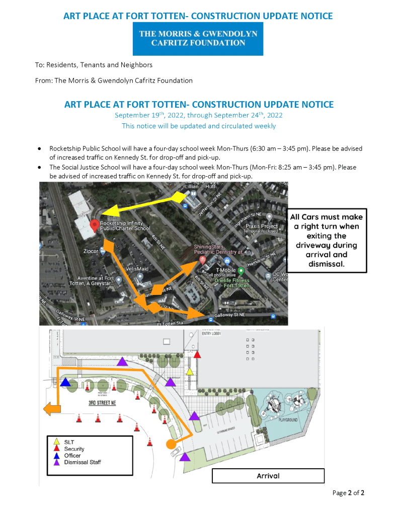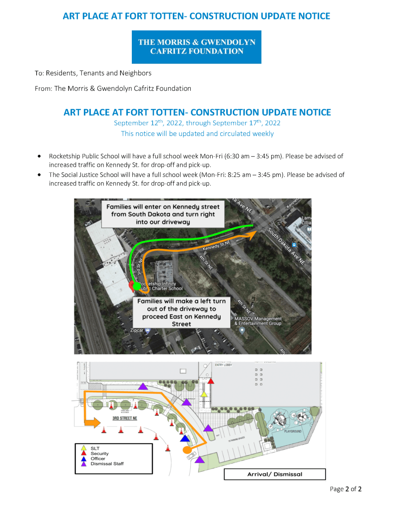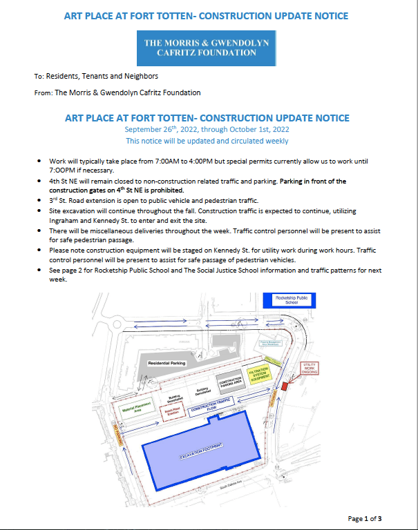 Note that a dog run will be included in the second phase of Art Place at Fort Totten, which is currently under construction on South Dakota Avenue between Ingraham Street and Kennedy Street NE with an anticipated 2025 completion date, so a dog park is not a use included in the survey for this green space. Specific uses and timeline for the final phases of Art Place at Fort Totten which will sit along South Dakota Avenue just north of Kennedy Street are unclear at this time. In addition, leadership of Food & Friends, located just west of the green space, indicated they are looking to potentially double the existing building footprint in the nearish future. So the surrounding neighborhood contexts could look a little different several years from now.