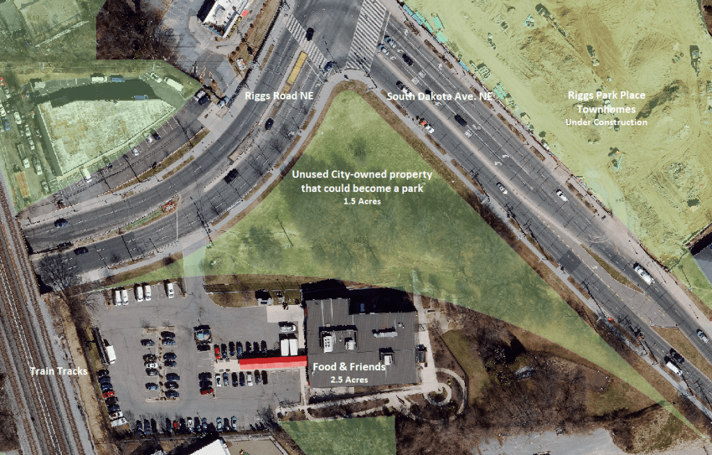 Aerial view of District-owned green space on corner of South Dakota Avenue & Riggs Road NE. Courtesy DC Office of Planning