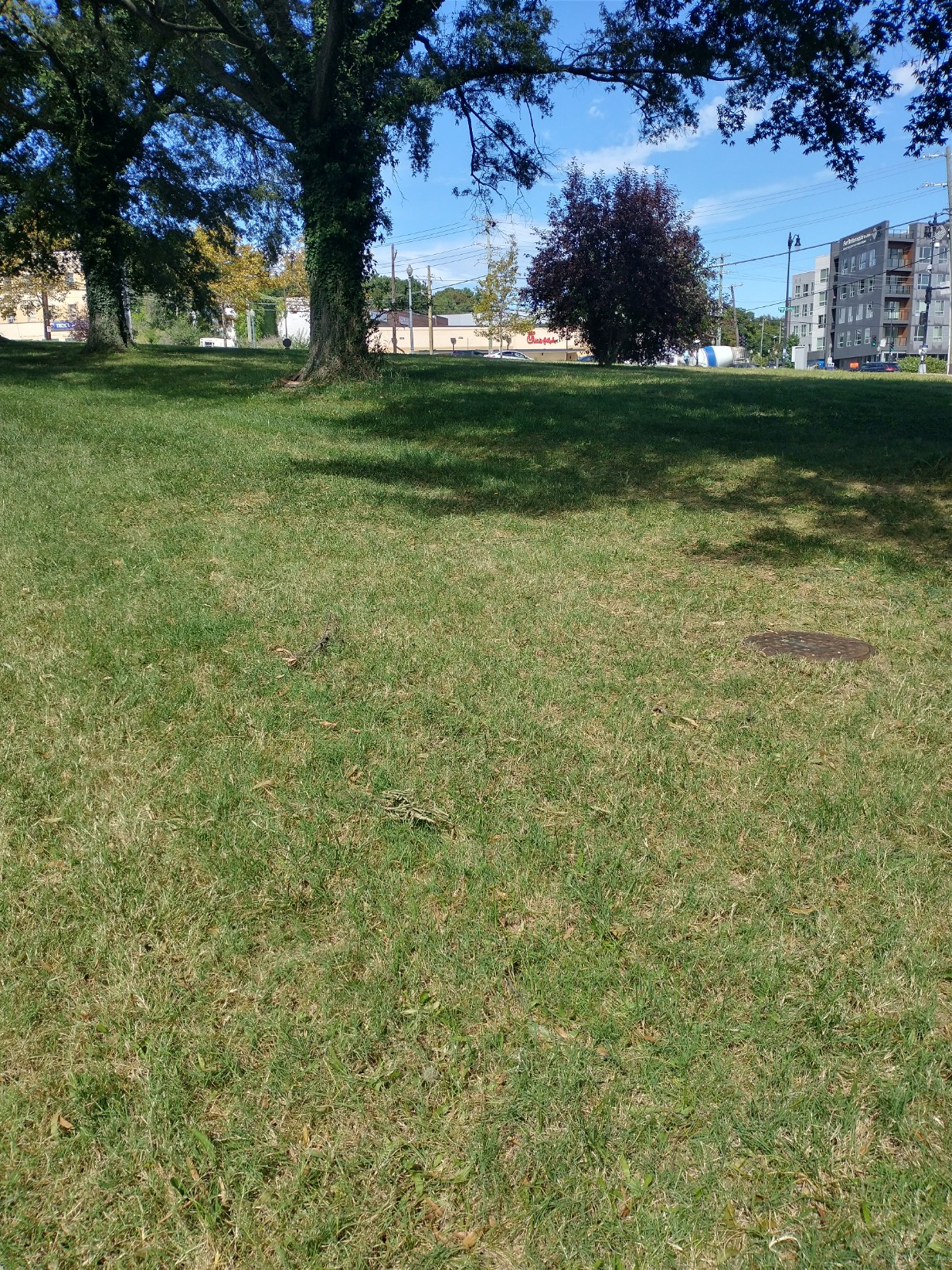 A few things to keep in mind as you complete the survey. The space is roughly 1.5 acres and triangular shaped with grade changes near a busy intersection. Given the shape of the land, it is not an ideal location for a standalone building/development project. The space has some really wonderful mature shade trees as well as a field of grass. If you can, take some time to just walk around the space and feel what it would be like to spend time on that corner of the neighborhood on a weekday morning/afternoon/evening or on the weekend.