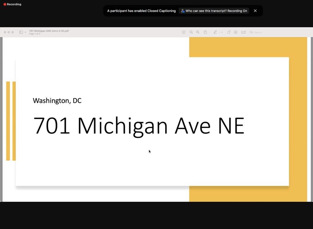 The applicant submitted the modification application in October 2022, but the issue only came up at ANC 5A’s meeting on January 25, 2023, after a resident asked about activity at the location. A representative for the applicant appeared at the ANC’s February 2023 meeting with a brief presentation. The representative agreed to present to the North Michigan Park Civic Association at some point and will also provide a traffic report as well, from what I understand.