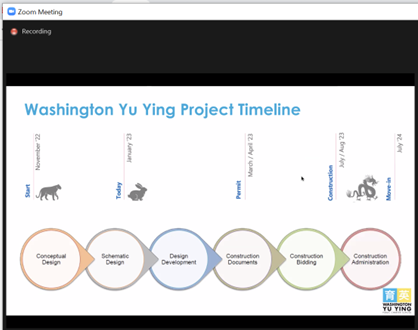 The plan is for the joint campus to have one new building for Yu Ying and one new building for Washington Latin. The existing Kirov building will house shared amenities, such as a gym, library, and cafeteria. Yu Ying will move in first. Yu Ying expects to break ground in July 2023 and open in August 2024. Washington Latin expects to break ground in the summer of 2024 and move in by summer 2025.