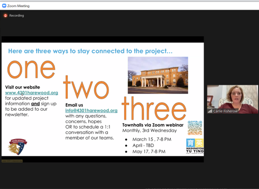 View details and sign up for project updates at https://4301harewood.org. There is a virtual town hall the third Wednesday of each month.