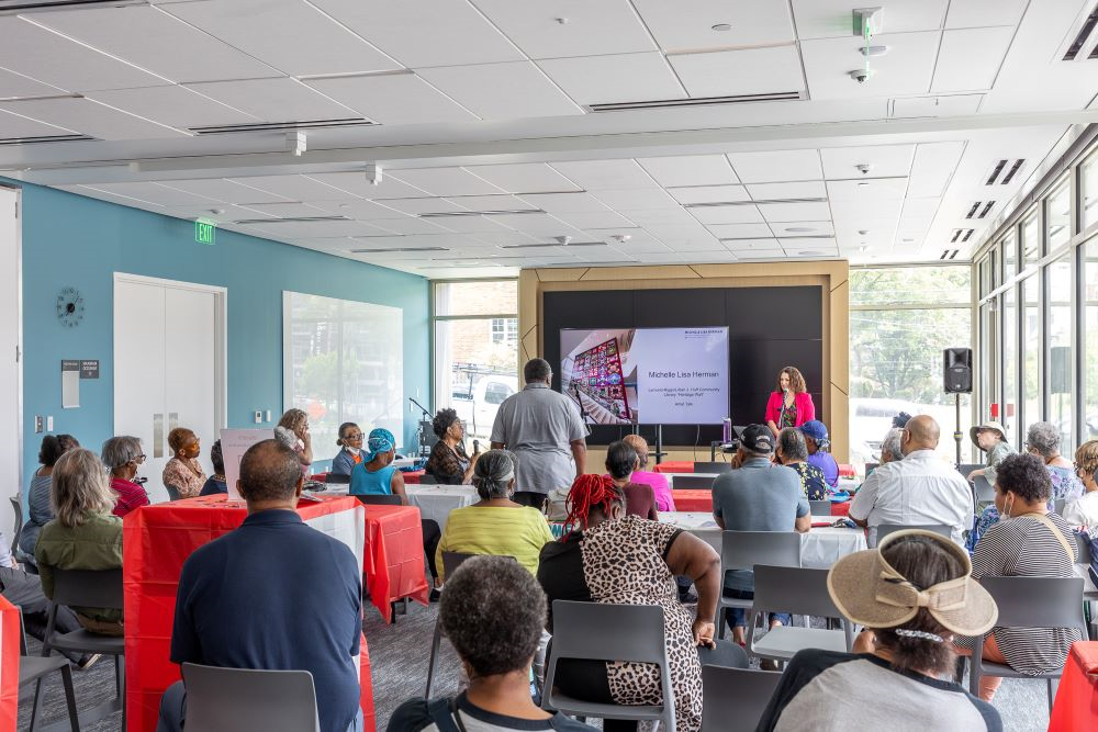 Everyone then convened in the conference room to chat, network, and enjoy the light refreshments provided by the Friends and the pizza provided by the Lamond-Riggs Citizens Association (LRCA). Lastly, everyone enjoyed the One-Year Anniversary cake.
