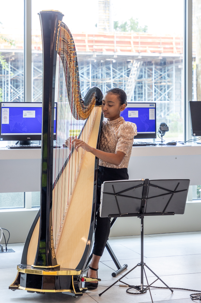 The adult programming began at noon. Sara Ramson led the festivities with a captivating harp performance. The audience was amazed by her mastery of the instrument despite her youth.