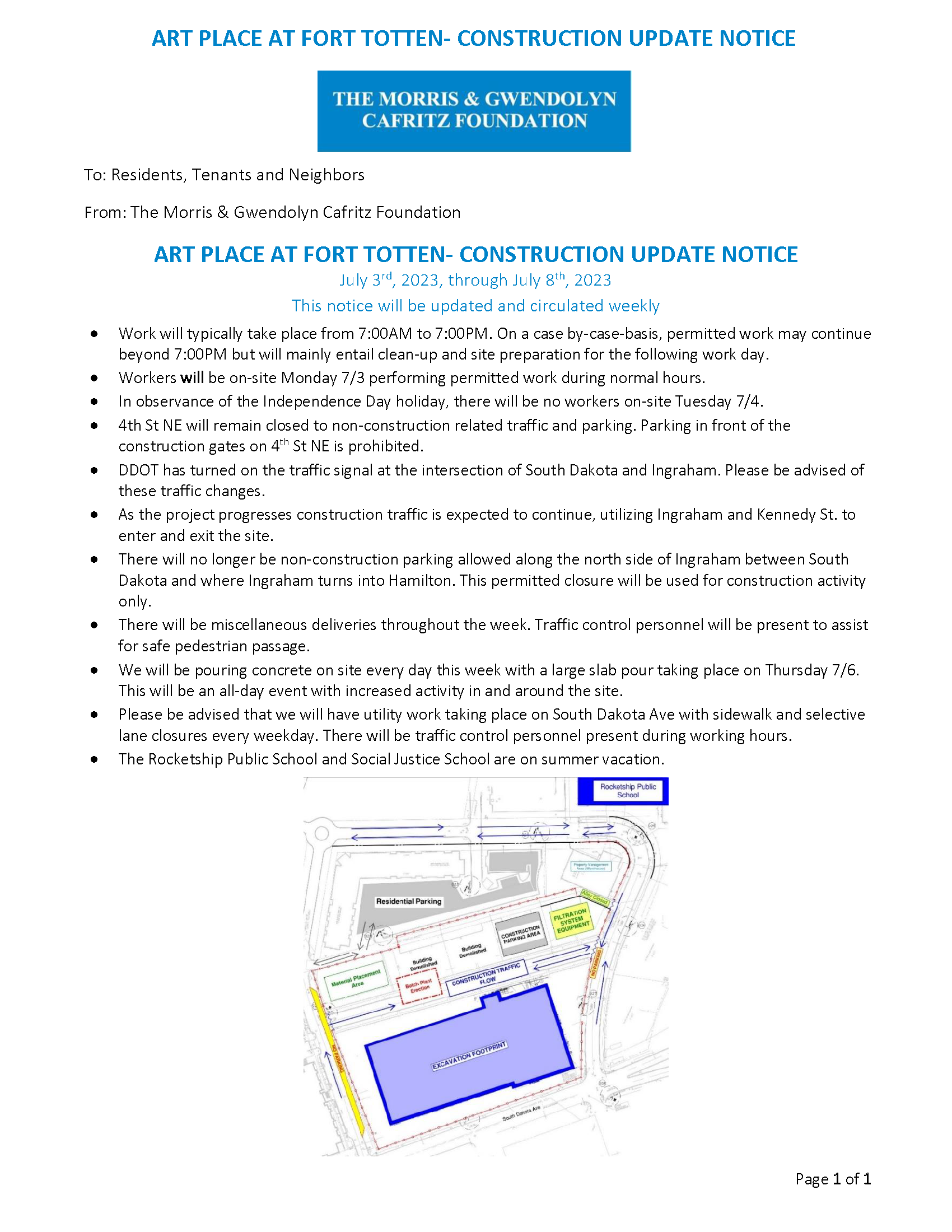 Phase 1: Summer 2023 to Winter 2023 Construction Begins Fort Totten Metro Station Parking Area to South Dakota Avenue NE