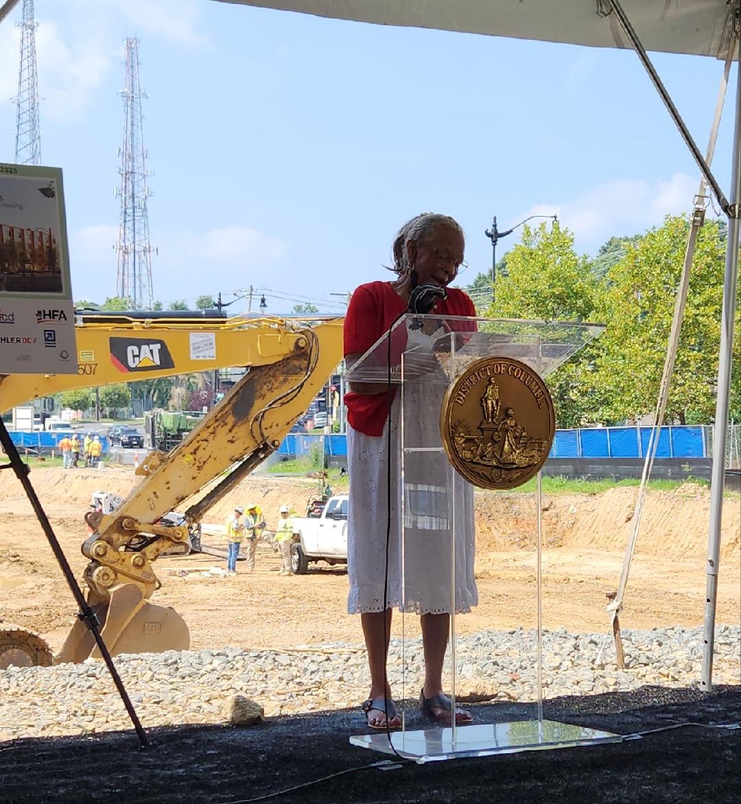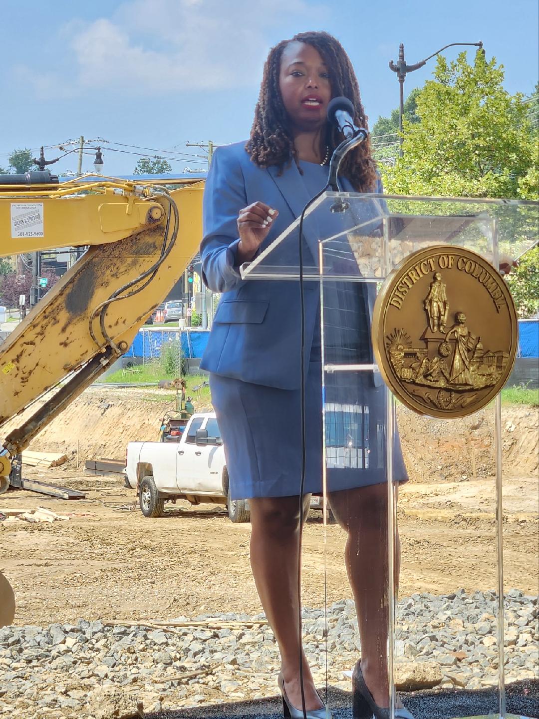 Vandalia Joyner Taylor, Riggs Park resident since 1959, introducing Mayor Muriel Bowser at groundbreaking. Photo credit Gwen Cofield.Ward 4 Councilmember Janeese Lewis George delivering remarks.Photo credit Gwen CofieldMayor Muriel Bowser delivering remarks. Photo credit Gwen CofieldMayor Bowser breaking ground with Riggs Park residents (left to right) Rev. Johnnie Mays, Edgar Sheppard, Barbara Rogers, Gwen Cofield, Shirleta Settles, Mary Wade, Mayor Bowser, Charon Hines, myself, and ANC 4B Chair Alison Brooks.Photo by http://www.jonflemingphotography.comWard 4 Councilmember Janeese Lewis George with residents. Barbara Rogers, Johnnie Mays, Edwin Washington (The Parks Main Street), CM Lewis George, Gwen Cofield, myself. Photo credit Office of CM Janeese Lewis George