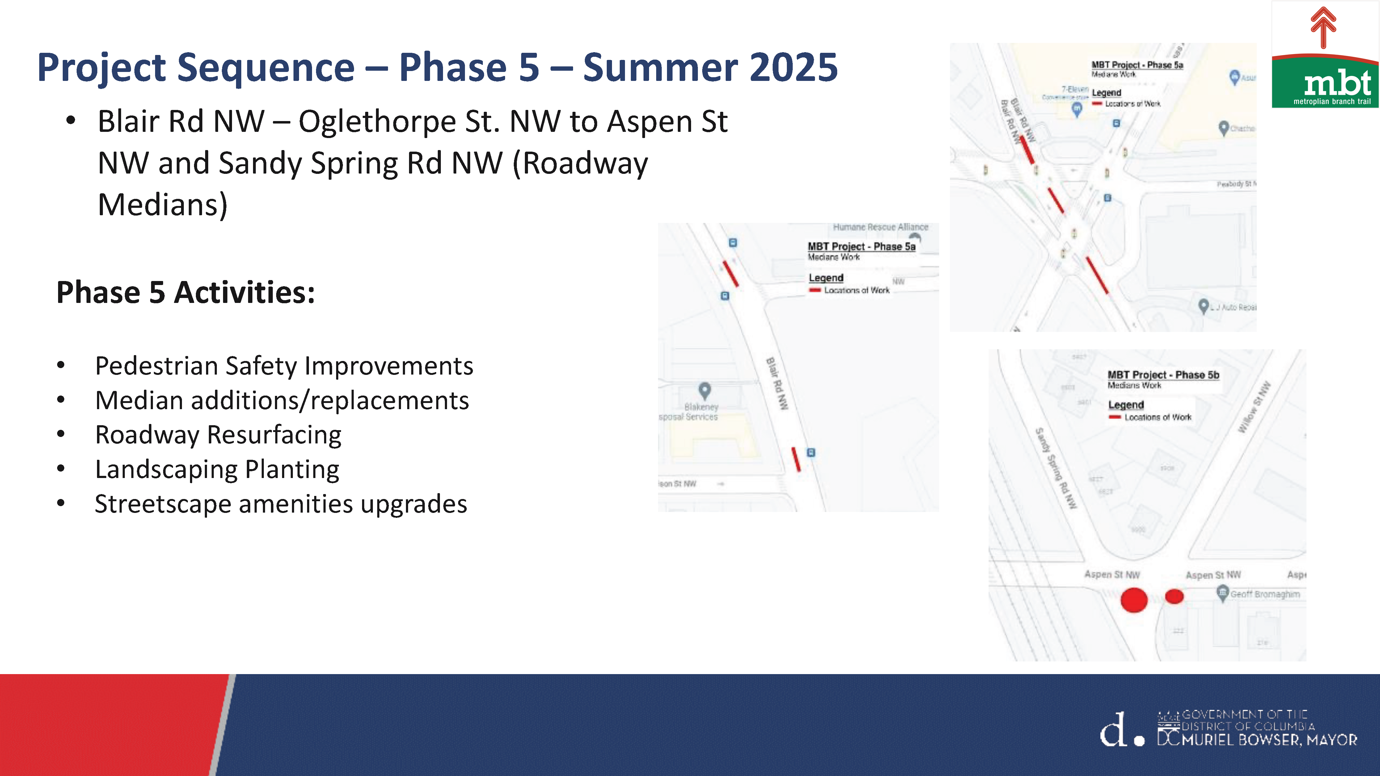 Phase 5: Summer 2025 Construction on Blair Road NW – Oglethorpe Street NW to Aspen Street NW and Sandy Spring Road NW Construction on roadway medians