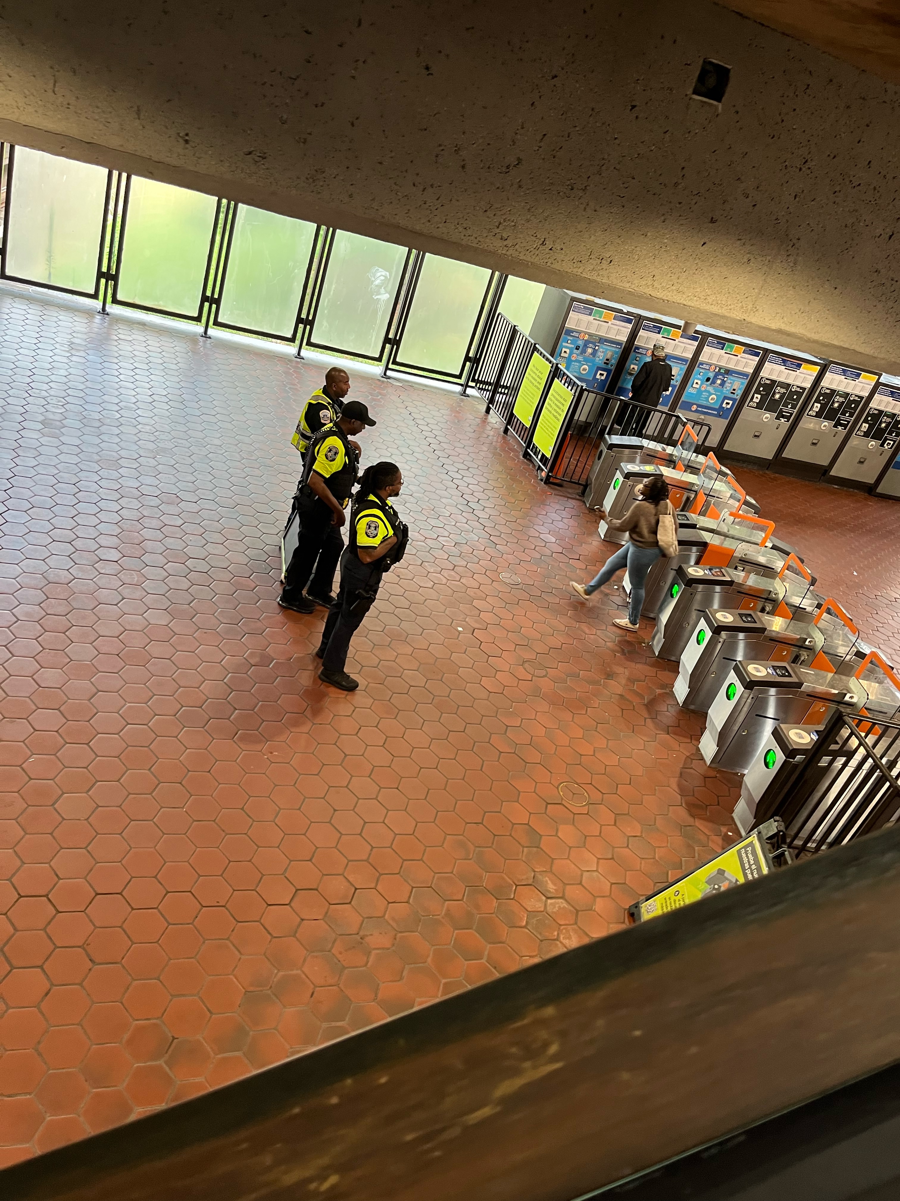 A reader sent in a picture of Metro transit police standing near new faregates at Fort Totten Metro station.