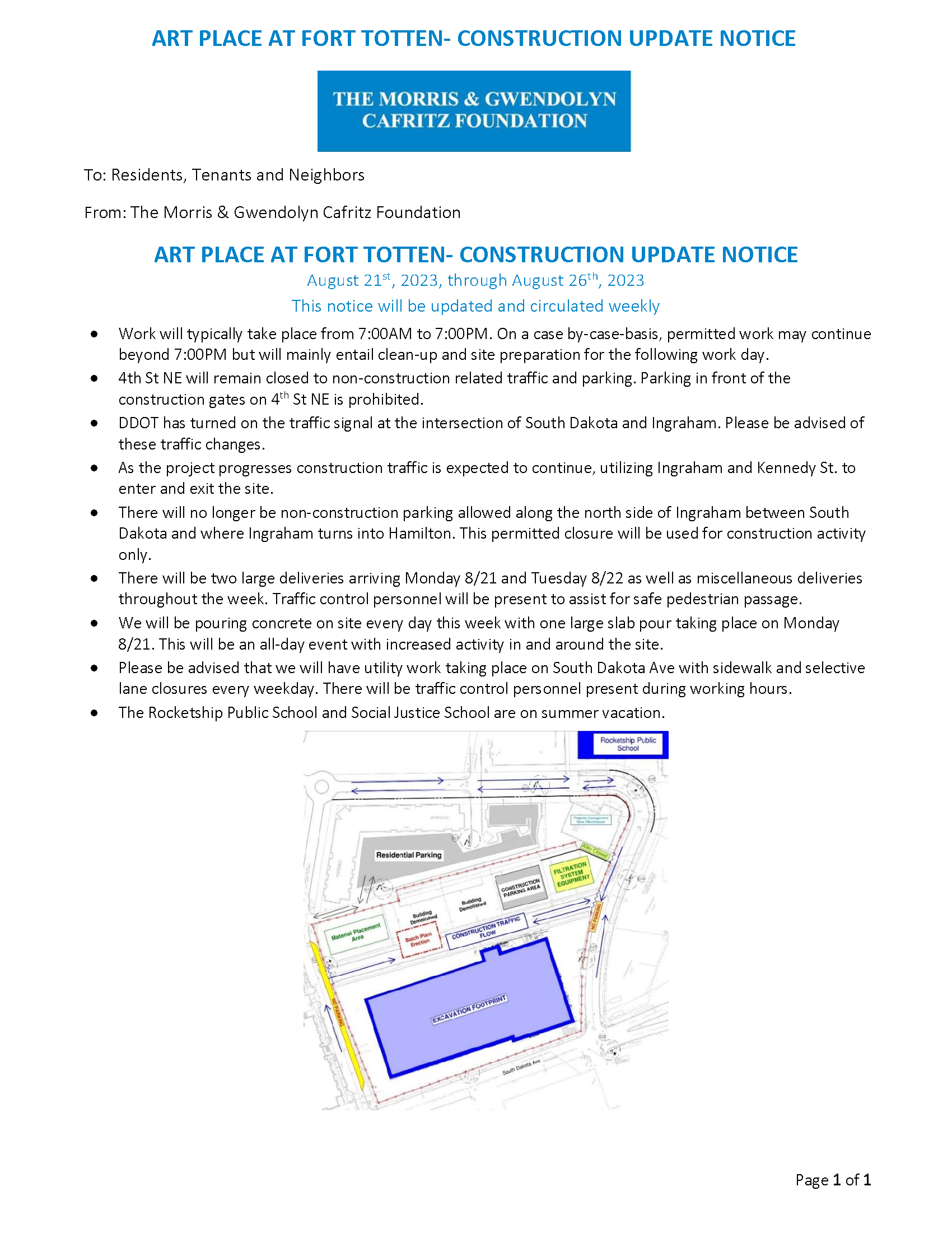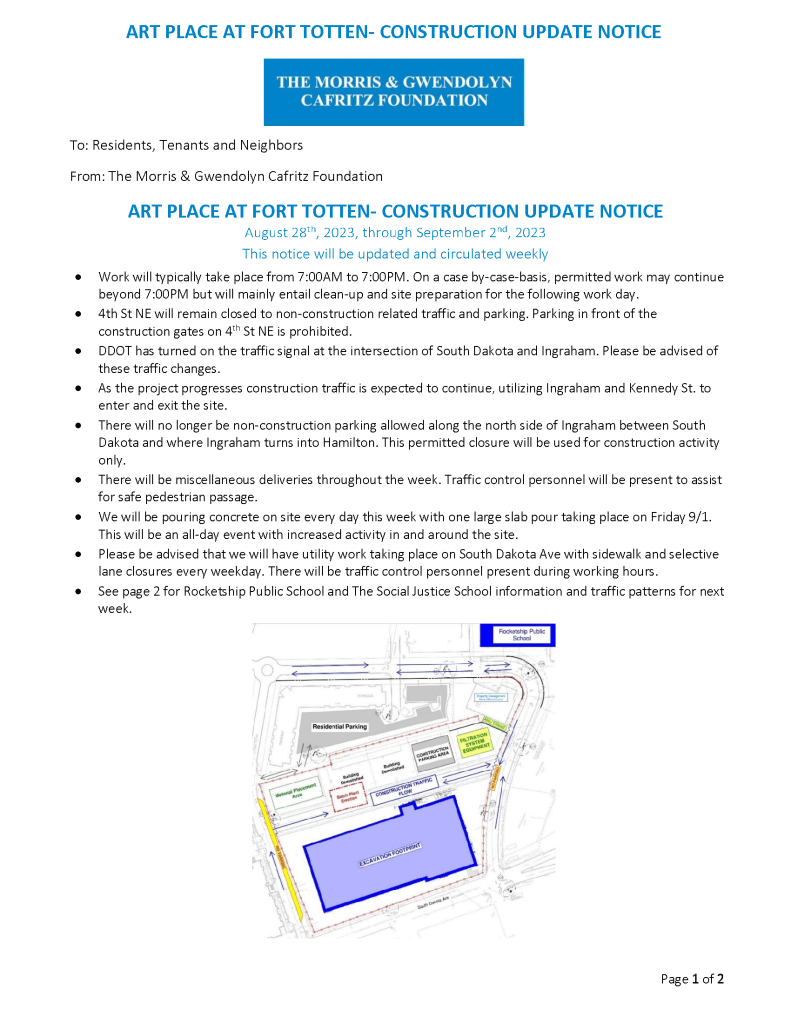 Phase 1: Summer 2023 to Fall 2025 Construction Begins Fort Totten Metro Station Parking Area to South Dakota Avenue NE