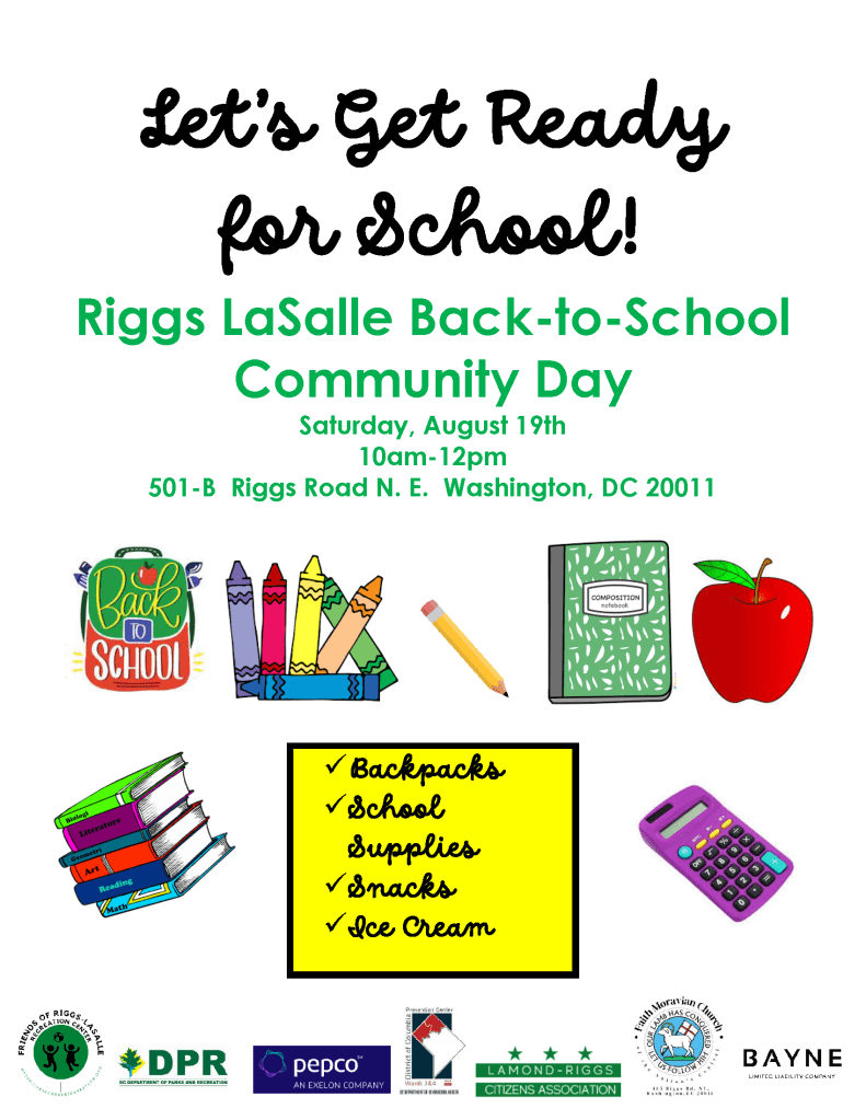 We’re taking over the entire Turkey Thicket campus and our annual Back-to-School Supplies Giveaway will happen at Brookland Middle (free quality backpack and school supplies).