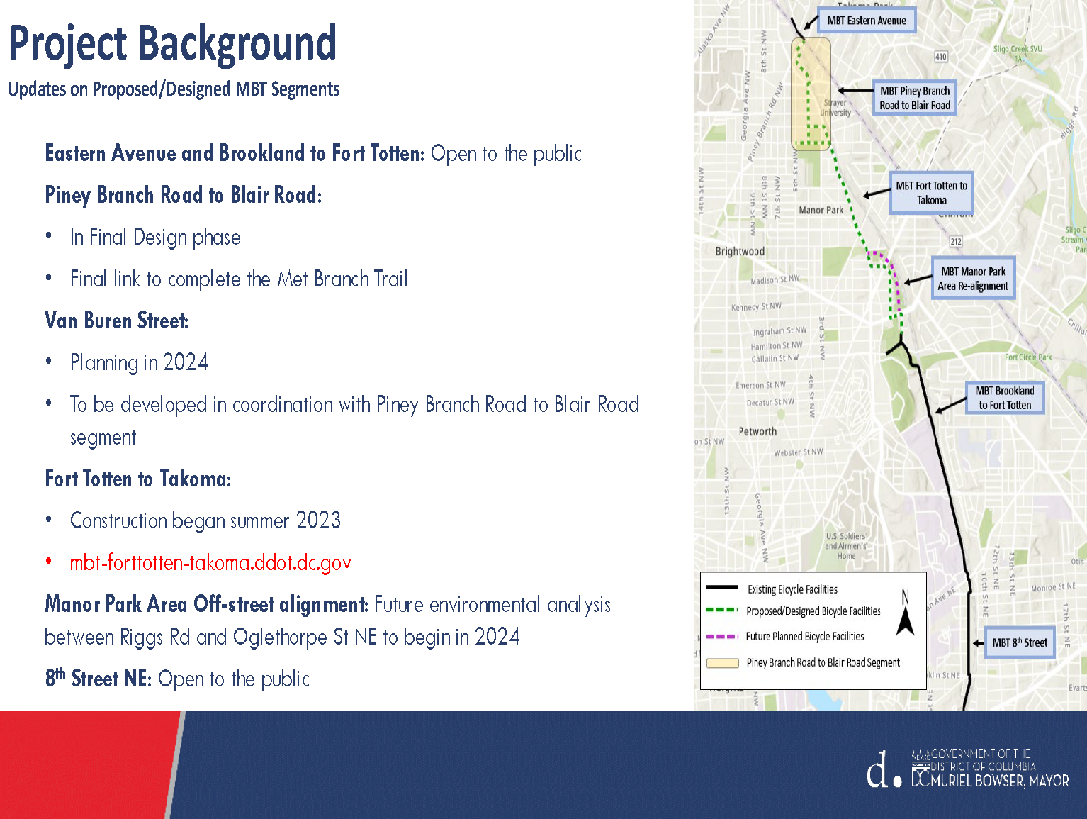 The slides have details about key intersections. Send questions to metbranchtrail@dc.gov.
