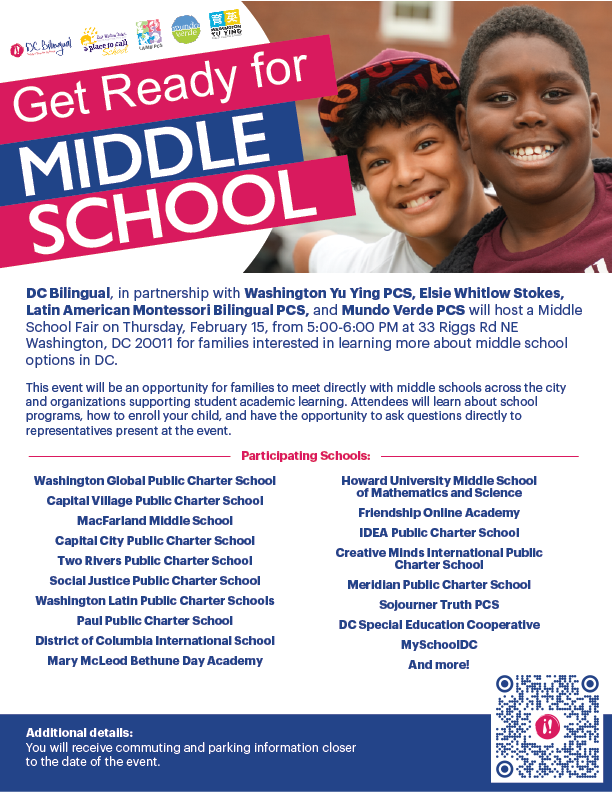 This event will be an opportunity for families to meet directly with middle schools across the city and organizations supporting student academic learning. Attendees will learn about school programs, how to enroll your child, and have the opportunity to ask questions directly to representatives present at the event.