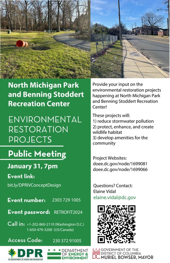 Join the DC Departments of Energy & Environment and Parks & Recreation to give input on an environmental restoration project happening at the North Michigan Park Recreation Center. The project is in the beginning of the design phase.