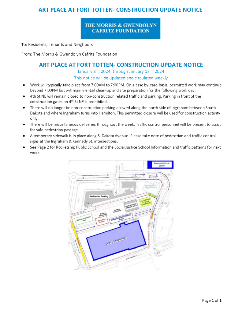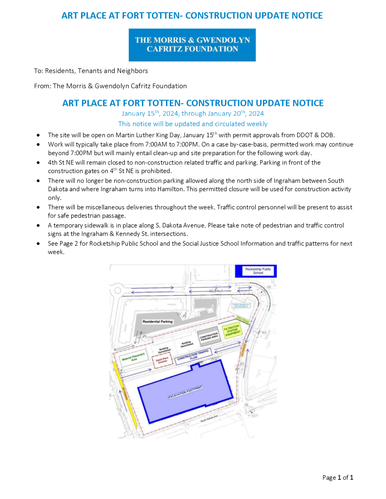 We have worked with the local ANC and LRCA (Lamond-Riggs Citizen Association) to obtain TCP approval for the necessary site staging along Riggs Road. We have devised and implemented a plan to minimize rush hour congestion and noise as mush as possible.