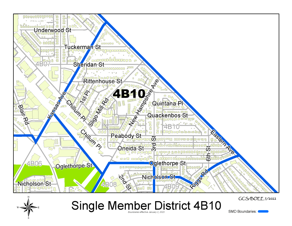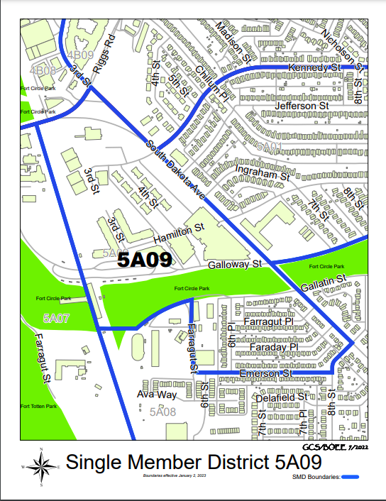 Riggs Park is served by ANCs 4B and ANC 5A, specifically ANC 4B08, 4B09, 4B10, 5A01, 5A02, and 5A09. So far, there are no candidates for 4B08 and 5A01 serving Riggs Park. If you have been a resident of one of these SMDs for at least 60 days, please consider running for ANC. There is still time to pick up petitions and collect 25 signatures from registered voters in the SMD.