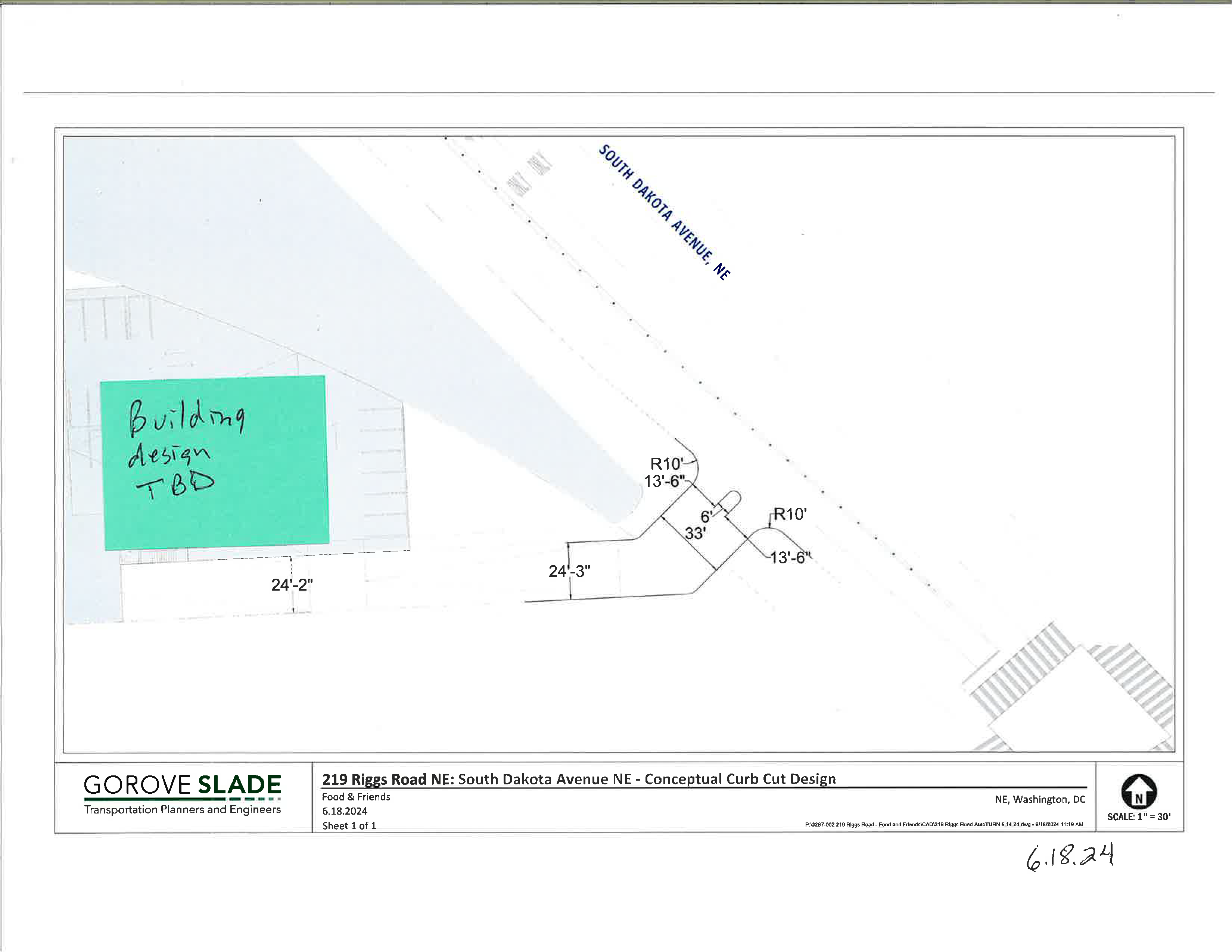 Food & Friends is requesting a curb cut on South Dakota Avenue just north of Kennedy Street NE. The so-called conceptual curb cut request will be the subject of a DC Public Space Committee meeting on August 22, 2024 (application #445416).