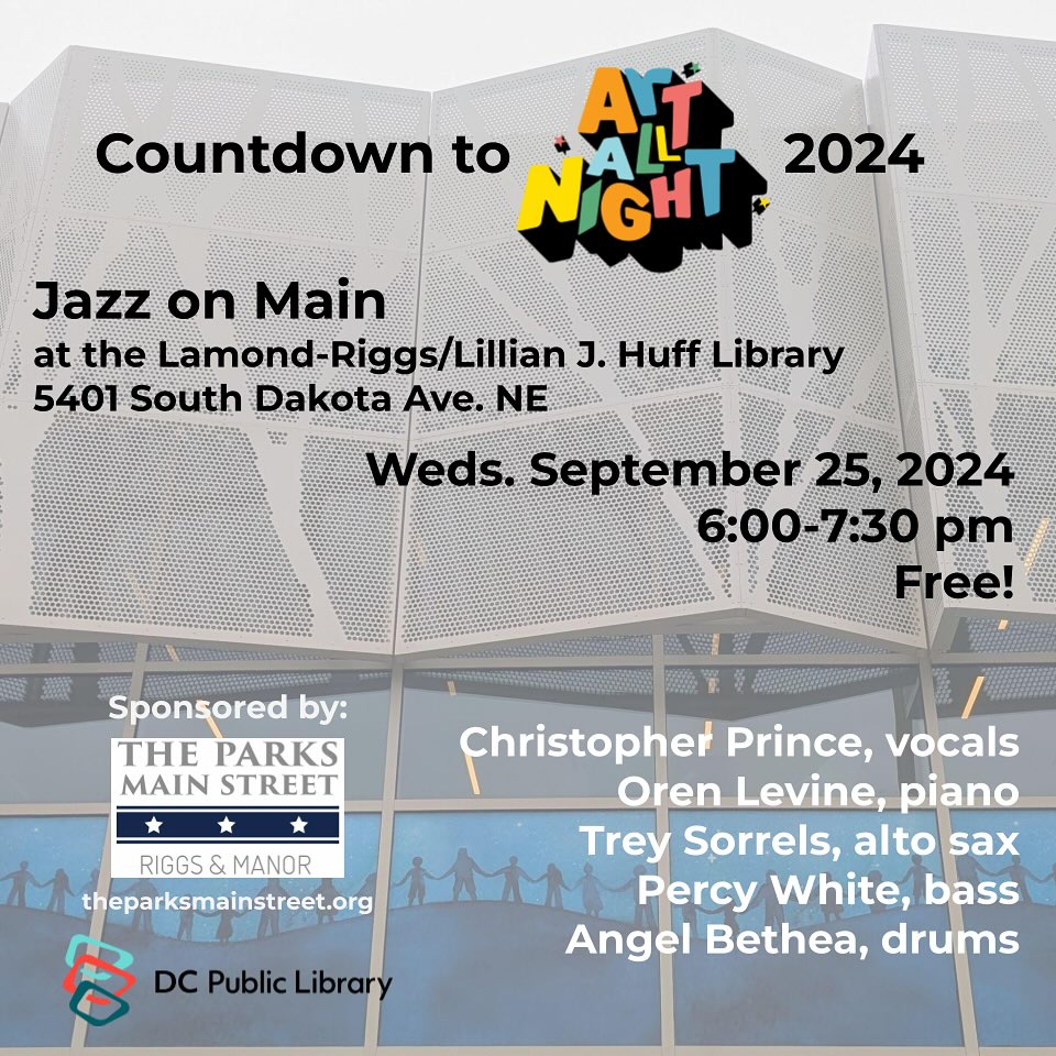 Visit small businesses, shop, dine, see local art, and experience live performances by artists from Riggs Park, Manor Park, and surrounding communities in Wards 4 and 5. Spaces throughout our business corridors transform into galleries, vending booths, food stations, and performances for an evening of art in all its forms.